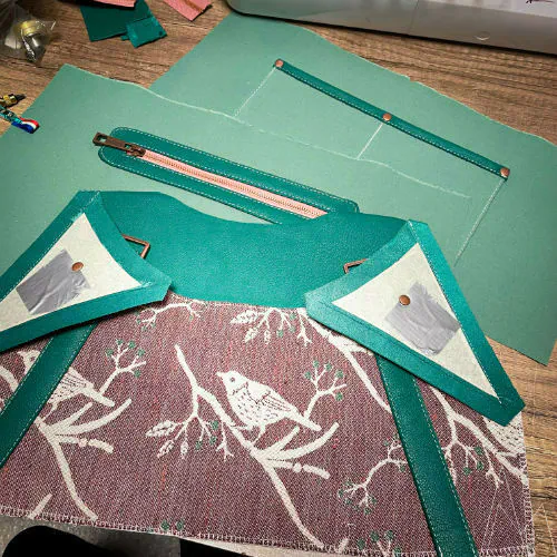 We discussed her desires, and our aesthetics harmonized wonderfully. From choosing fabrics and hardware to the very last stitch, we worked hand in hand and I took incredible pleasure in crafting this beautiful "Nostalgia" (Hiraeth Handbag by Lavender & Twine). I love its contrasts of colors and textures and am very proud of the level of finishing, one of my finest pieces to date.