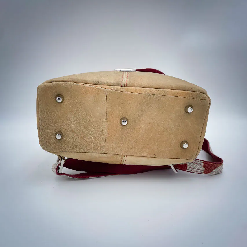 This small-sized yet surprisingly roomy backpack is both cute and practical, with its adjustable straps as well as numerous pockets. The handle and back connector are made directly from the sleeves cinches for an added touch of history.