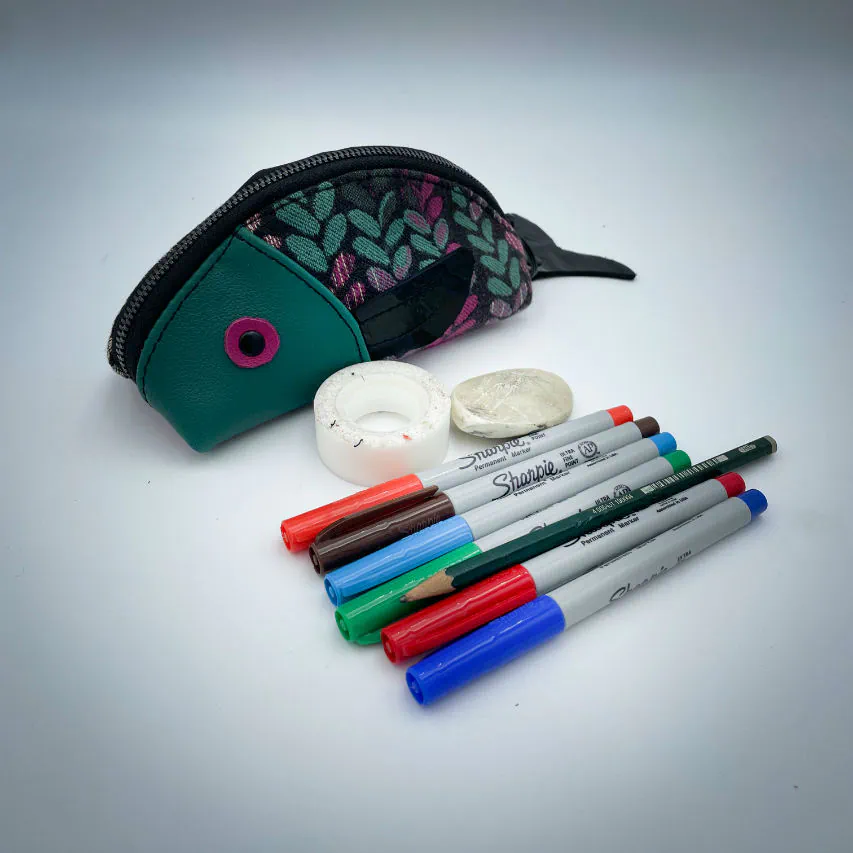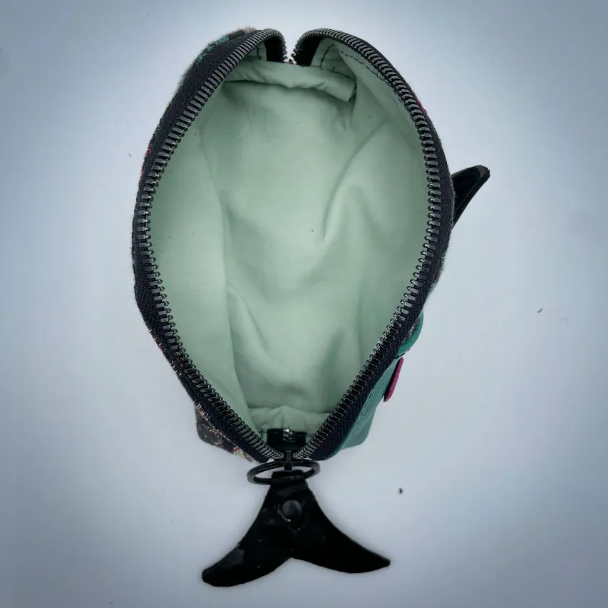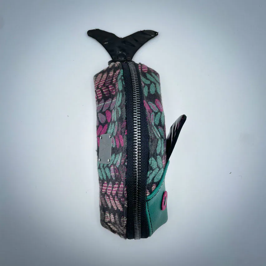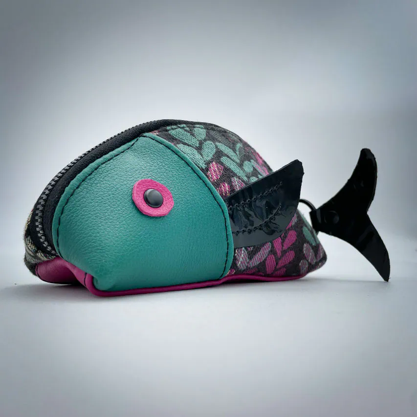 “Gump” is one of the 5 pieces from the “Poisson d'Avril” (April's Fool) collection, born from an impulse when Shamballa Bags released this adorable pouch pattern that inspired me a lot. In search of whimsy, I got sucked in and immediately imagined the most incredible combinations of materials and colors: