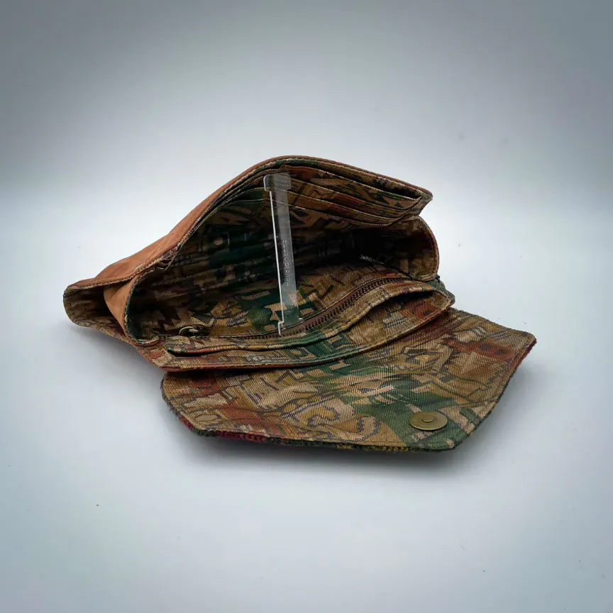 The result: a delightfully unexpected and practical wallet—perfect to slip into your bag or use on its own thanks to the removable wrist strap.