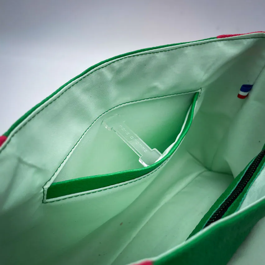 A small bag that doesn’t go unnoticed, with its bright, playful colors in a compact format.