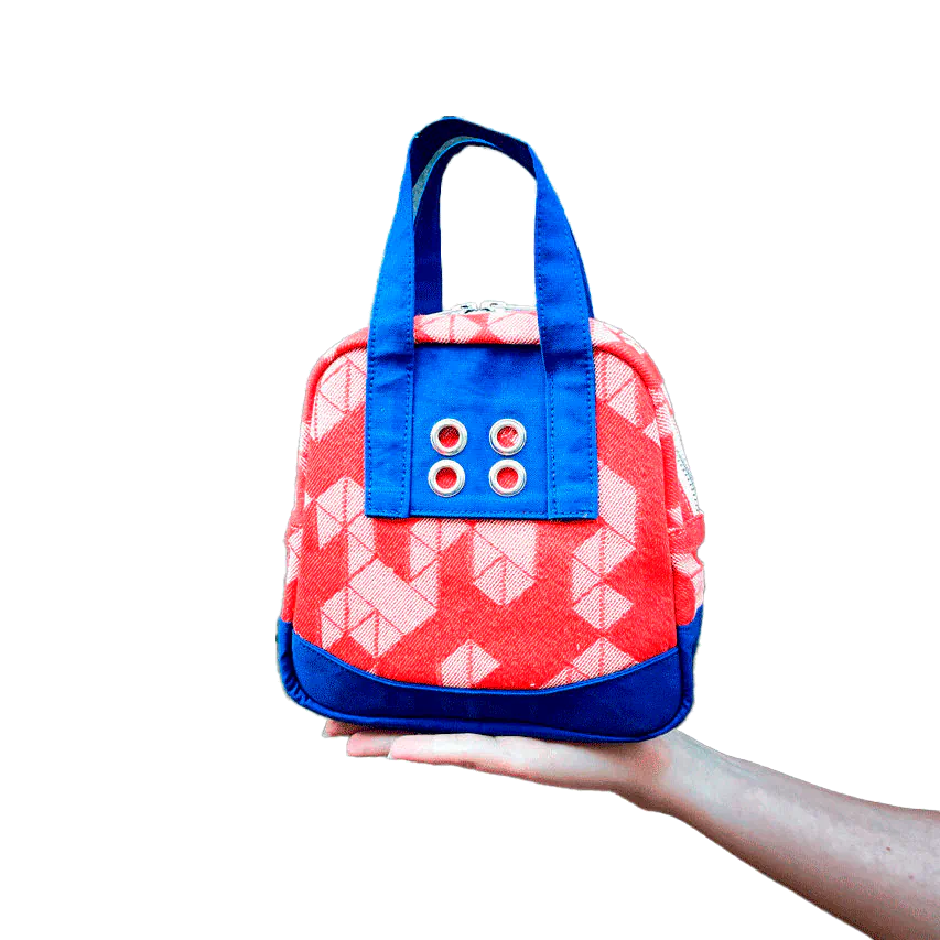This piece doesn't go unnoticed with its bright combination of a bold geometric pattern and a “blue workwear” canvas made in France!