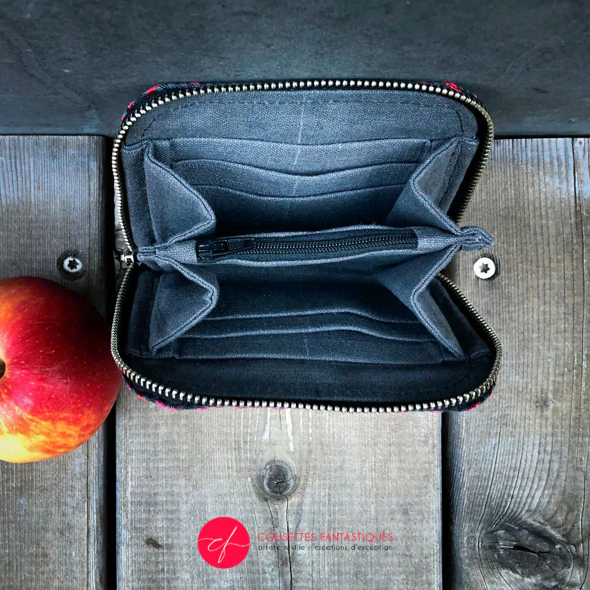 Reduced price (original price 309€) because it's the first one of this size, and my fabric pencil left a very slight mark in the middle of the card compartments.