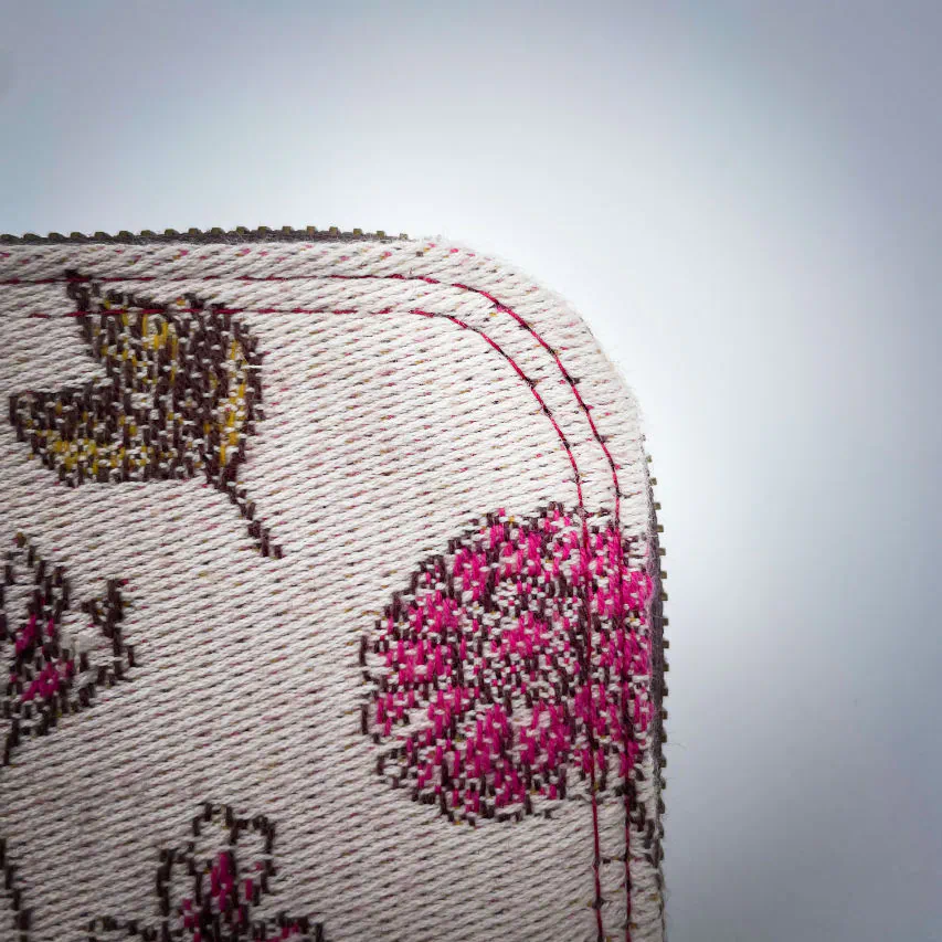 - Interfacing: Kraft-Tex, Decovil Light (42% polyester - 35% viscose - 23% polyamide), and certified organic cotton wadding.