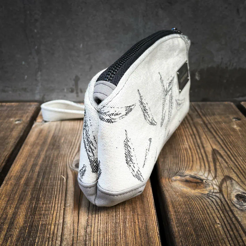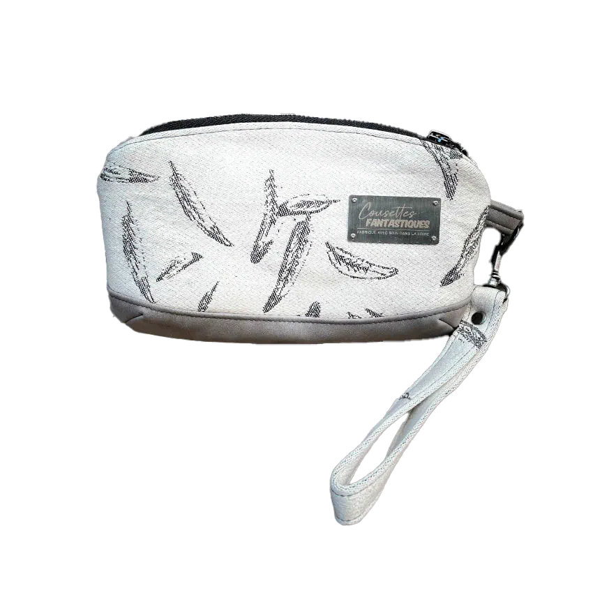 "Intuitions" Range / Theme Nature A flight of feathers in shades of gray for a version that exudes lightness, softness, and simplicity of this handy little pouch.