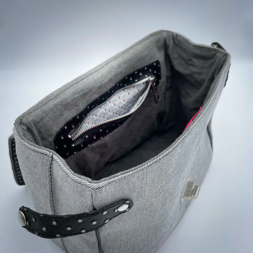 I also loved all the nifty details it offered: wide flap with a turnlock for a secure and classy closure, sophisticated french seams on the side, snap ties to widen/narrow the opening...