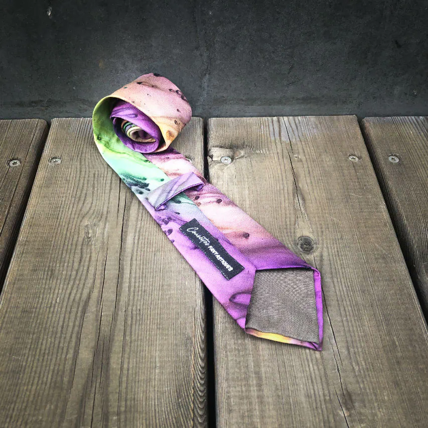 I wanted to step out of my usual creations, while bringing this timeless accessory up to date by transcending its classicism with a decidedly modern and original choice of fabrics. Entirely handcrafted, the tie is a labor of passion that demands precision and patience.