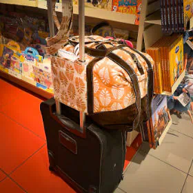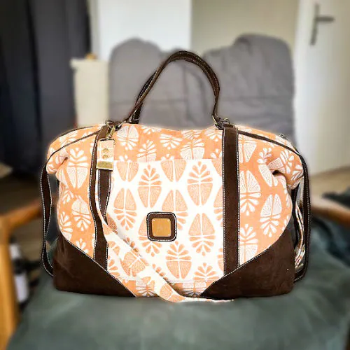 Je remercie mille fois Marie pour le sac de voyage qu’elle a créé sur mesure, avec un coupon d’echarpe de portage souvenir.