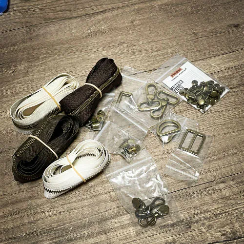 Puis l'écharpe arrive et nous faisons une visio où je lui montre les matériaux de compléments et la bouclerie qui iraient bien avec son écharpe. On en sélectionne quelques-uns, et pour lui faciliter le choix je prends plein de vidéos et photos au soleil et à l'ombre.
