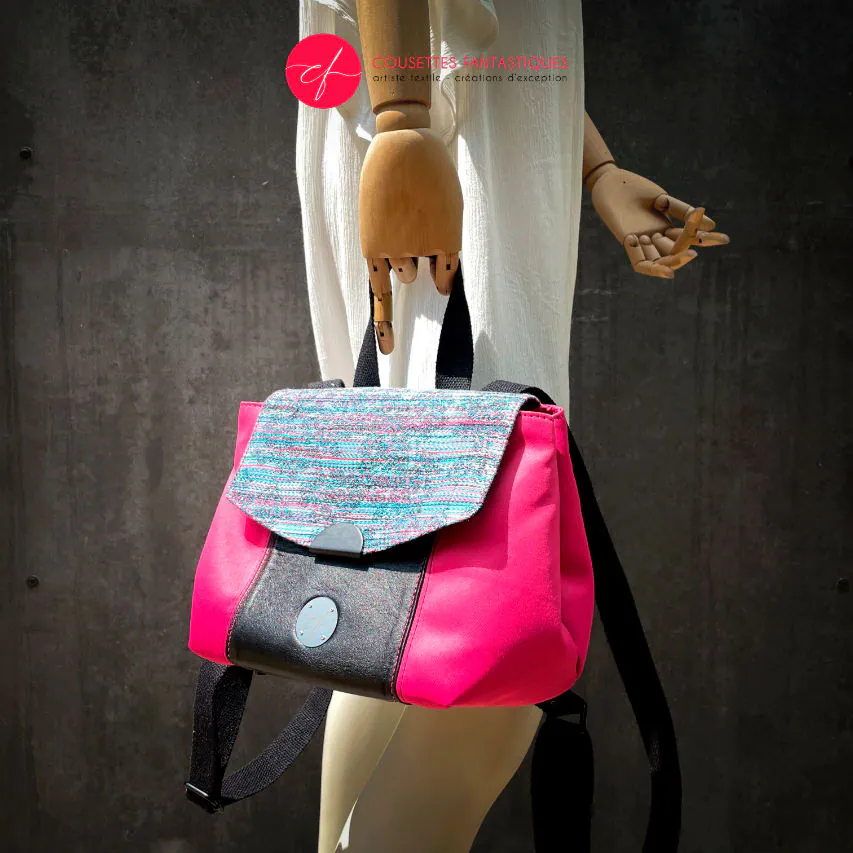 Gamme "Intuitions" / Thématique Géométrie Une pièce très rock'n'roll, avec des couleurs et des matériaux contrastés. Un petit sac à dos aux lignes organiques et aux proportions efficaces.