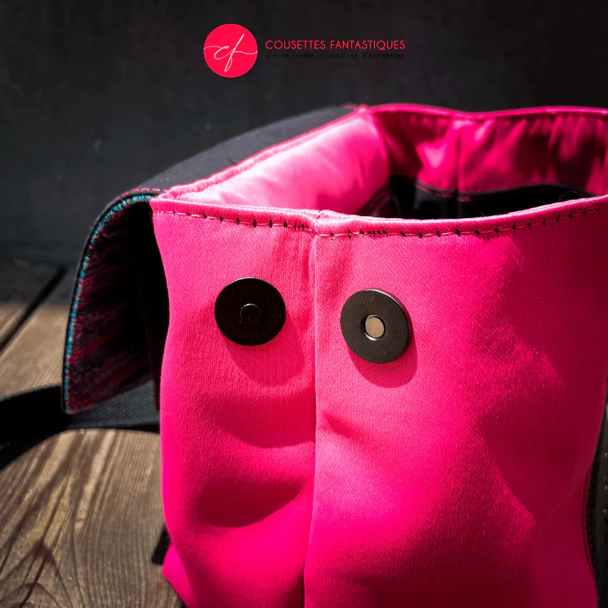 Il est légèrement plus profond et plus large qu'un sac à dos classique et est équipé de boutons magnétiques sur les côtés pour le rendre plus compact tout en facilitant l'accès à son espace central.