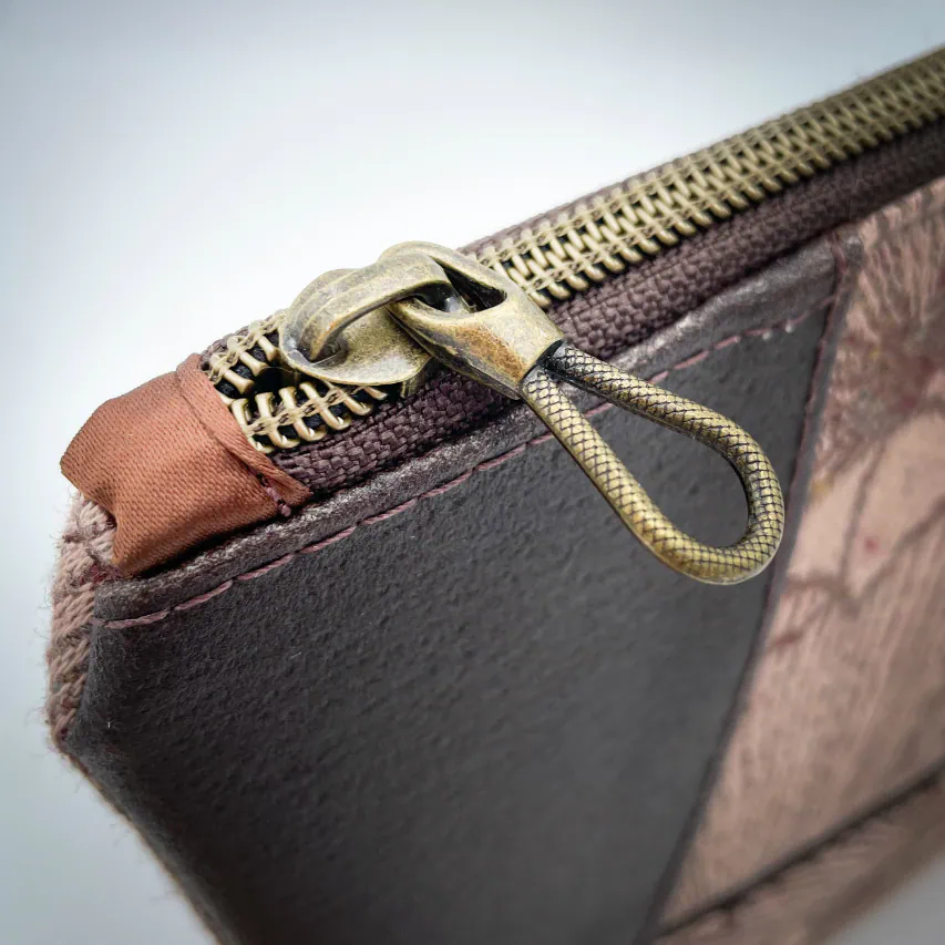 Gamme "Cogitations" / Collection Mémoire Brun pommelé, rose poudré, doux et intemporels. Patrimoine, savoir-faire, innovation, classe... tout un programme pour une pochette remarquable par sa contenance malgré sa finesse.