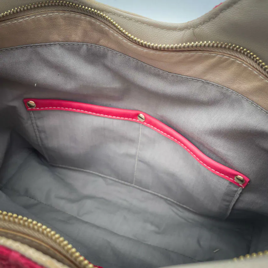 - à l'intérieur, une poche zippée et une poche plaquée ;