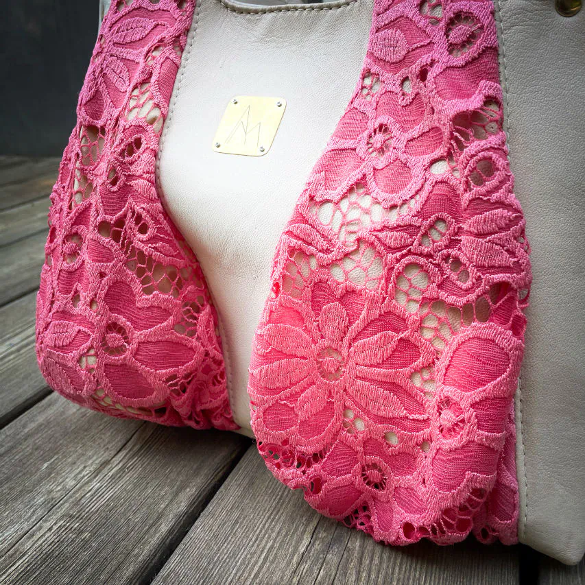 J'ai cherché un cuir qui ressemblerait à ma peau en tonalité. Là encore dans cette série il ne sera pas upcyclé, n'ayant pas trouvé mon bonheur chez mes sources habituelles. La dentelle et la doublure sont issues d'un rachat à une couturière.