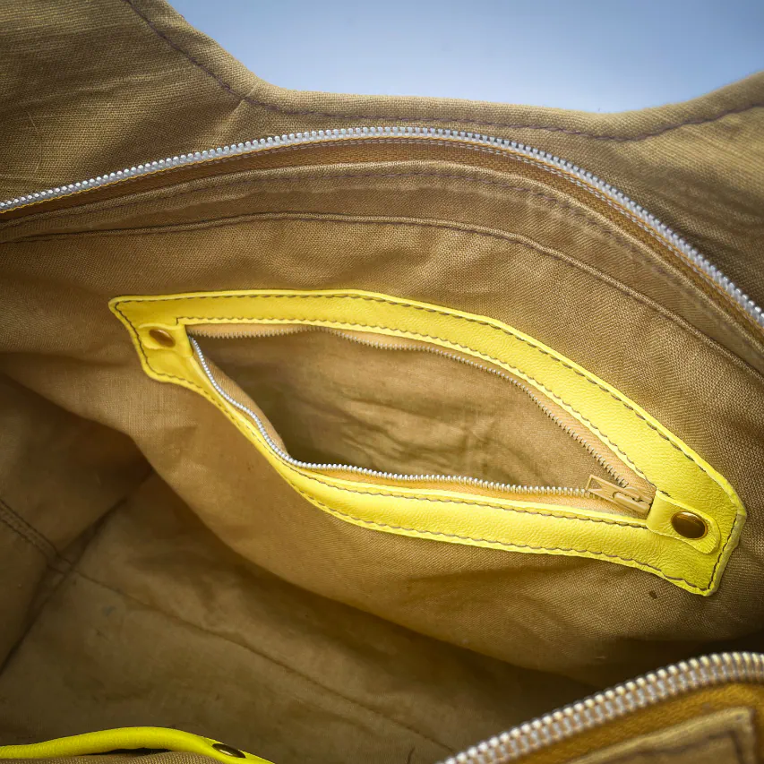 - à l'intérieur, une poche zippée et une poche plaquée ;