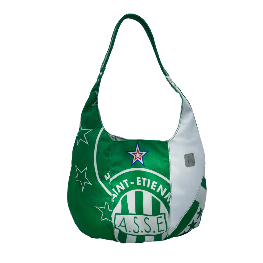 J’ai chiné un maillot et un fanion vintage chez Trincamp (une boutique locale dédiée au vintage du foot), et ai cherché des modèles de sacs qui permettraient de les mettre en valeur par leurs formes.